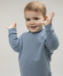 Kids' sweatshirt made in recycled fabric with self-fabric knitted rib at neck and cuffs. Flatlock V stitching detail at the CF neck. YKK popper fastening on the shoulder on sizes 0/6 – 24/36 only. Tag-free.